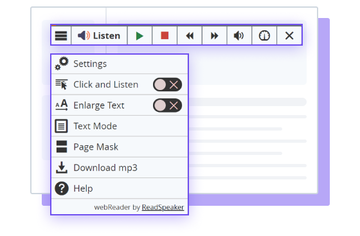 لقد تمّ تطوير حلول ReadSpeaker لتحويل النّصوص المكتوبة إلى أصوات ناطقة لمنحِ كلّ فردٍ تجربة مستخدم متساوية تمتثلُ لإرشادات سهولة الوصول إلى محتوى الويب (WCAG) التّي ينصّ عليها اتّحاد شبكة الويب العالميّة (W3C).