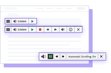 أضفْ الحيويّة إلى المحتوى الموجود على الإنترنت من خلال قراءته بصوت مسموع. عزّزْ الفهم، زدْ من مستوى التّركيز، وحسّنْ القدرة على تذكّر المعلومات. يتمّ دمجها بسهولة في بيئة التّعلّم عبر الإنترنت الخاصّة بك ليتمكّن الموظّفون من الاستماع للمحتوى الصّوتيّ بكلّ بساطة من خلال نقرة واحدة على زرّ “الاستماع”.
