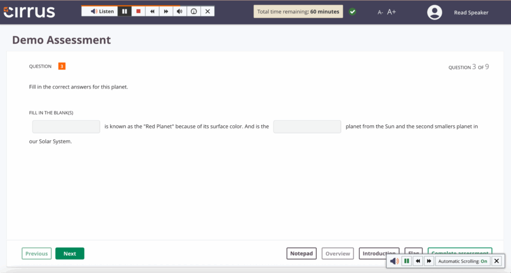 Text-to-speech technology fosters an inclusive testing environment, supporting diverse learners. ReadSpeaker can be seamlessly embedded into Cirrus assessment platform exams.